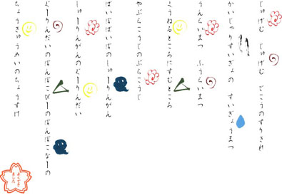 | 私たちのつくった「いい声マイク」を使っていい声で楽しく朗読をしましょう。いい声マイクは声の良さをリアルタイムに視覚化し、プロジェクションされた文章の横にアニメーションで声の評価スタンプ(はなまるやさんかく)が押されていきます。一緒にいい声の出し方を考えてみましょう。 |
