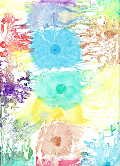 | アートリペルという新しい画材の体験をしてもらいます。スポイト状になった絵の具をたらすだけで絵の具がどんどん広がり、誰にでも面白いはじける絵が描けます。とにかく簡単!新感覚の驚きと楽しさを味わいながら、色とりどりの個性の花を咲かせましょう。幼児から大人まで無邪気に遊んじゃおう! |