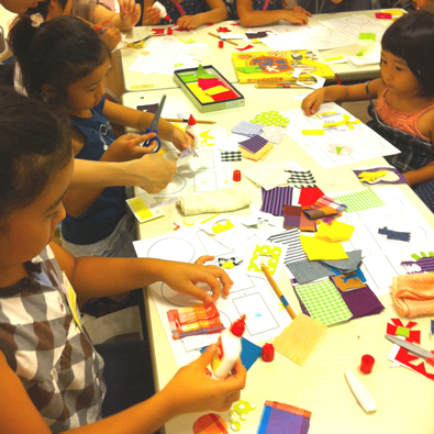| 布製マイバッグに、ハギレや布描きクレヨンを使ってオリジナルのマイバッグを作ります。ハギレは子供服を作る時にでるハギレを中心に工場で商品を作る時に出てしまう布の切れ端や素材を使います。自由な形に切って、ボンドでペタペタ貼って自分だけのオリジナルマイバッグを作ってみましょう。 |
