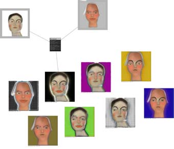 あなたの描いた絵が、友達の描いた絵と交配(こうはい)し合って、たくさんの絵を作り出します。エンドウ豆も人間も、みんなそっくりなのに、みんなちょっとずつ違います。それは交配という仕組みで、たくさんのバリエーションを作り出しているからです。植物を育てるように、あなたの作った絵の種を育てる遺伝的絵画の楽しさを体験できます。