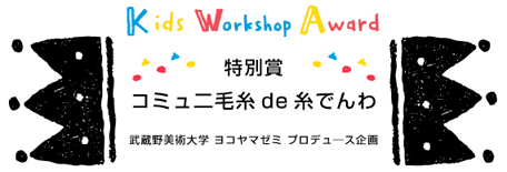 | 吹き抜けの大きな空間に張り巡らされた沢山のカラフルな糸。「美しいインスタレーションだな」と思い、見上げながら階段を上ると、あたかも大学の備品のように整然と存在している箱があり、子供達が箱の表面にいくつもあるコップ状の凹みに耳や口を当てて「もしもし?」「きこえる?」「こんにちはー」と楽しそうに話しているのを見て糸電話だと気がつきました。驚きと発見と美しさ。今回のてづくりイベントを華やかに彩り、同じ時・同じ場所に集った知らない誰かと誰かを古くて新しい方法で繋げてくれた「糸電話」は、特別賞にふさわしいと全会一致で決定しました。 | ||