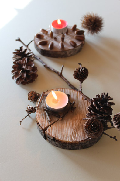 | 自然の材料でキャンドルスタンドを作ります。 木・石・木の実・枝などをデコレーションして素敵なスタンドを作りましょう。 木材は、間伐材や強風等で倒木したものを使います。 |