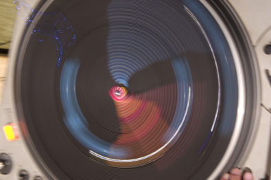 地面につくったくるくる地帯にいろいろな物を置いて、回転するとどんなふうに見える?くるくる地帯を真上から回転しているビデオカメラで撮影すると、駒の模様みたいになります。くるくる地帯に置かれた物が回転する様子を観察しながらの実験造形。置く物は紙、ロープ、布などの身近な素材や自分の持ち物などを使います。 |